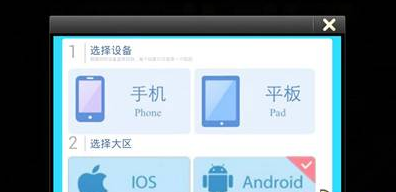 第一步:选择设备,玩家选择使用手机或者是平板。