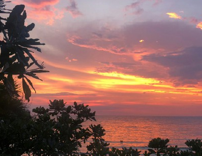 25.欢傍晚的海边,抬头有金色的太阳,低头有一眼看不到尽头的波光。