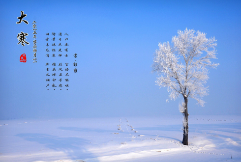 12、季节凋零了心情,朔风带走了花香,寒流枯萎了草木,尘世敛去了繁华。在这个寂寞的冬天,一个小小的问候,一句贴心的话语,让我们彼此温暖!大寒快乐!