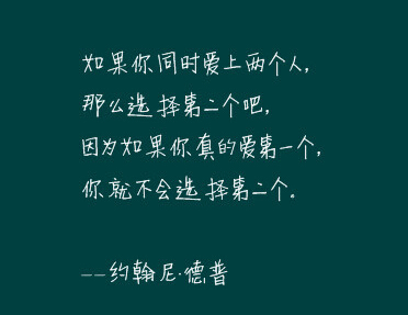 12.如果你同时爱上两个人,那么选择第二个吧,因为如果你真的爱第一个,你就不会爱上第二个。