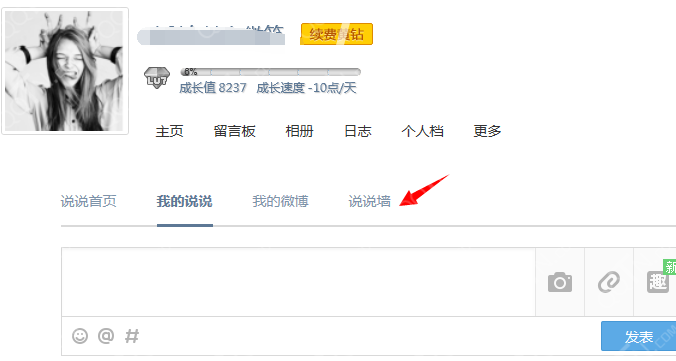 1、QQ空间说说墙与说说类似,不过可以吸引更多的QQ用户来观看,大家可以根据一个话题发送自己想说的话,与微博话题类似,如图:
