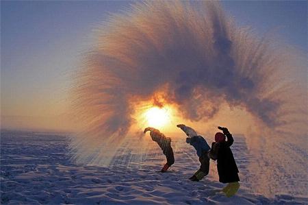 小编的印象中,东北的冬天会很冷,电视剧中的东北都是雪齐膝盖的地方。或许在有些时候,看见了泼水成冰的美景是一件美好的事情,不过在武汉,应该不会有这样的情况。下面看看别人的泼水成冰唯美图片。