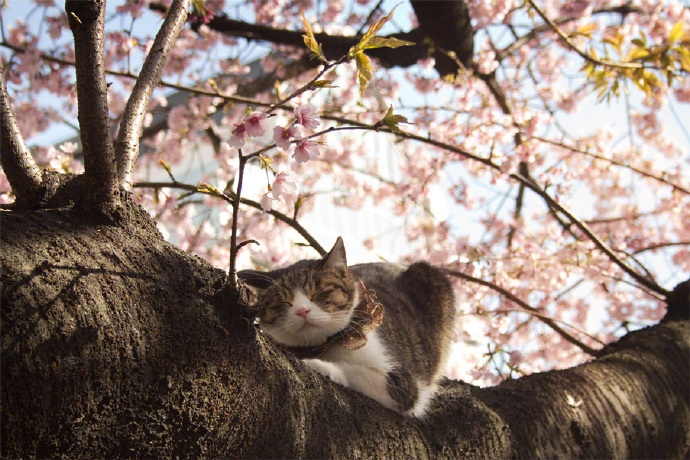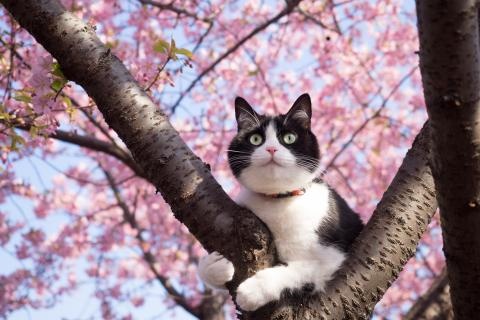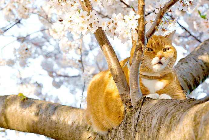 春天赏樱花的季节到了,猫奴们你们有看过最近的新闻吗?没错!就是樱花树上出现了一只猫,让我们一起来看看这些好看的美景图吧!