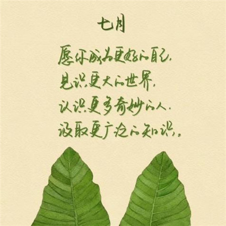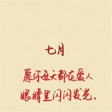 说到七月,我想到的是阳关、蛙声、蝉鸣、空调、西瓜,在我眼中的一切,都是美好的。虽然害怕天气炎热,但是更爱夏天的温暖和热情。