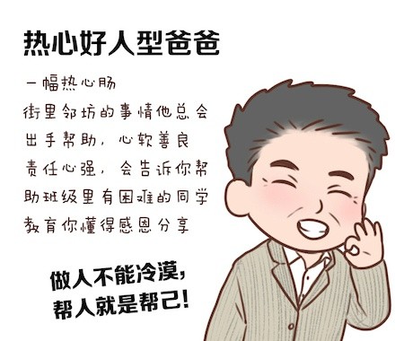 有一个男人从来不会说爱你,但是他会一直都在旁边支持鼓励你。每个人的父亲都不一样,有些父亲是多重性格。来盘点你的父亲属于哪种风格吧!