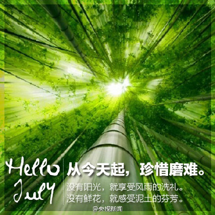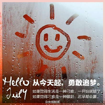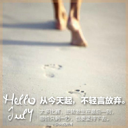 今天是七月第一天。2016年已经过半,你给上半年的自己打多少分?若有不甘,便从今天起,勇敢追梦;从今天起,不轻言放弃;从今天起,为爱付出。遇见对的人之前,先成为最好的自己。从今天起,珍惜时光,你若不信努力和时光,时光第一个辜负你。下半年,为自己加油!