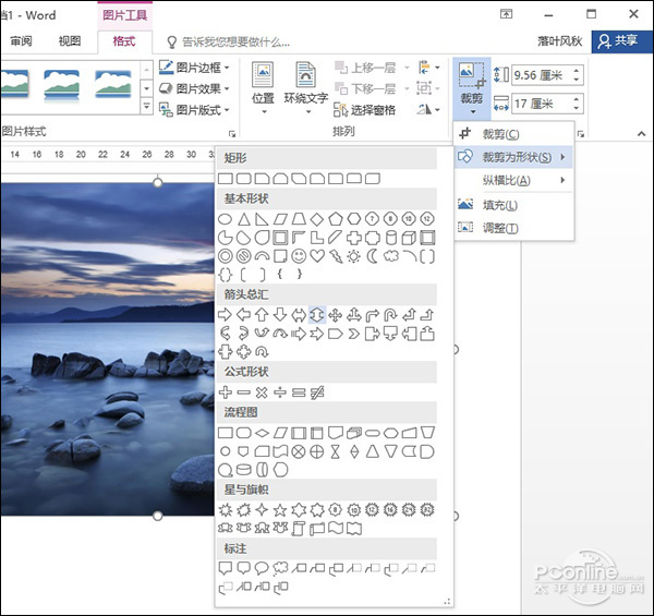 虽然Word支持一键化将图片修改为特定形状,但仍然显得不够灵活。如果你还意犹未尽的话,不妨试一试它的另一项功能――一键裁剪为不同形状。
