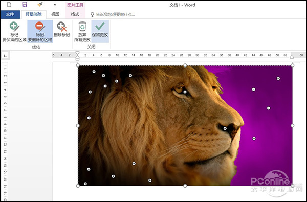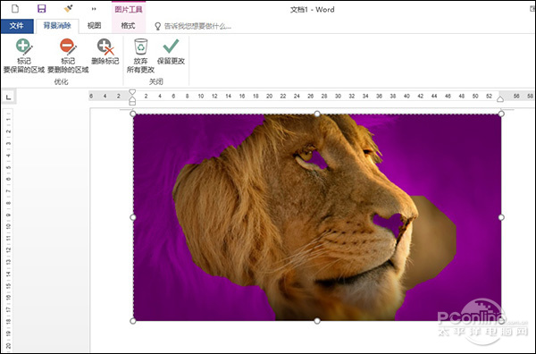 3. 调整矩形框,框住自己需要的部分,这时Word会首先对图片智能识别,其中紫色区为软件判断的准备要扣掉的部分;