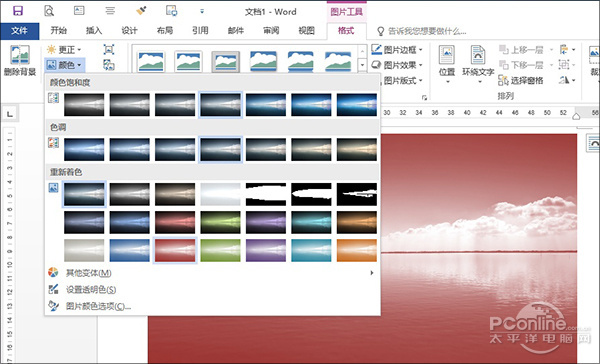 2. 接下来点击图片,在“图片工具”→“格式”标签下选择“颜色”;