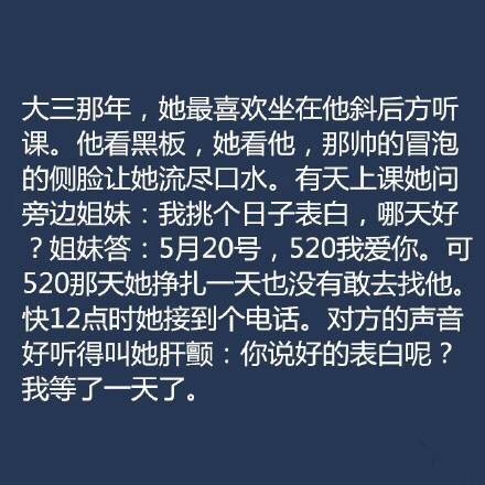 曾经有那么多的言情小说摆在我面前,我吸收了所有女主角遇到男主的情节。于是我发现所有的小说情节只适合存在脑海里,不适合应对所有的情节和相遇。