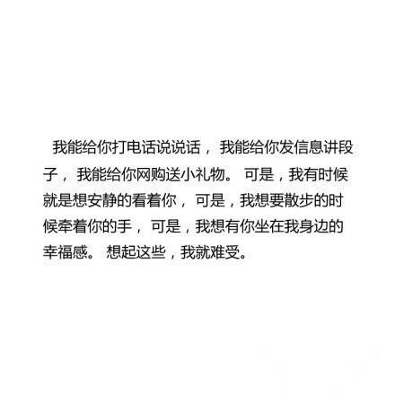也许在有些人看来,异地恋或许有讲不完的情话,有着说不完的言语。但是不管怎么亲昵,总是分隔两地,有些时候你们不会懂那种感情。仅靠着两部的手机,两台电脑维系着所有的感情。