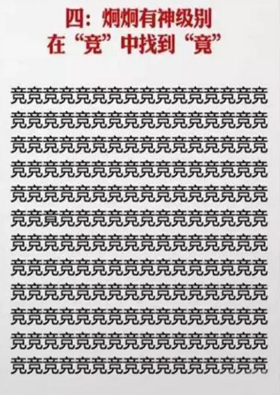 对自己视力感到有信心的同学,不妨来试试神级视力表找汉字,看看你能玩到第几关。