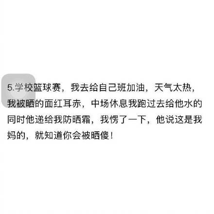 我喝过的水摆在桌子上,男同桌才打完球回来,然后大汗淋漓的,然后就拿起了我喝过的那瓶水,我说我喝过了,然后他对我笑一下.