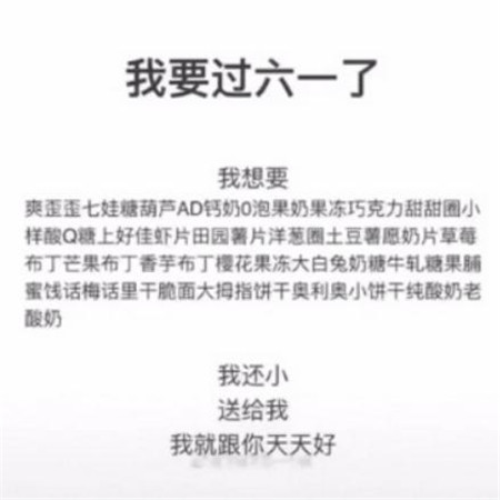 六一儿童节相信很多人都会发朋友圈庆祝的,所以今天小编为大家准备了一组超级搞笑,很雷人也很吸引人的朋友圈配图,相信大家都会喜欢。一起来看看吧。