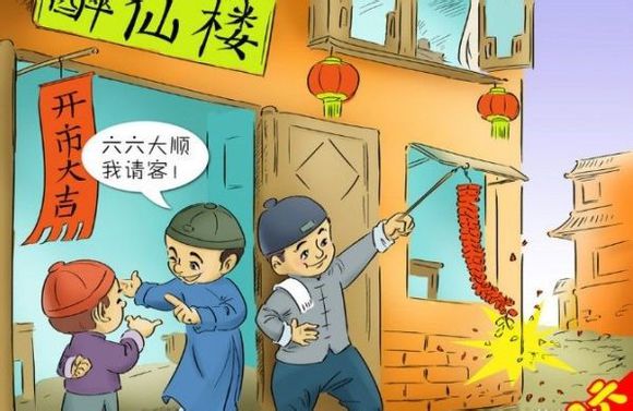 年初六,商店酒楼才正式开张营业,而且要大放鞭炮,不亚于除夕的境况。传说这一天最受欢迎的是当年满12岁的男孩,因为12是6的二倍,这叫六六大顺。这一天,每家每户要把节日积存的垃圾扔出去,这叫送穷鬼。