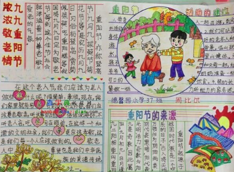 每年的农历九月初九日为重阳节,2017年的重阳节也快要悄悄来临了,为了庆祝重阳节这一中国传统节日,许多学校也会开展一些手抄报等活动,小编带来了一组有关重阳节的手抄报。