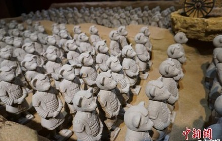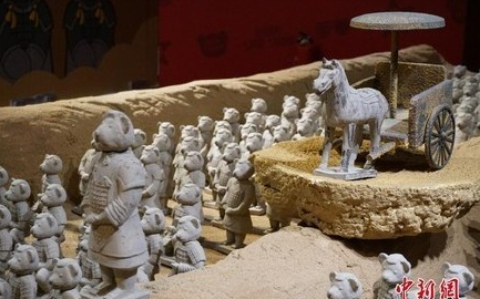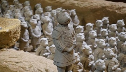 萌萌哒的泰迪熊版“兵马俑”亮相无锡!500多只手工捏制的泰迪熊兵马俑让人不得不惊叹。若埋在地下,几千年后会不会成为历史遗迹呢?