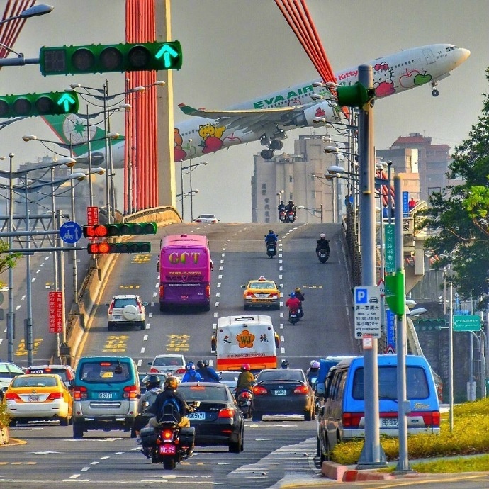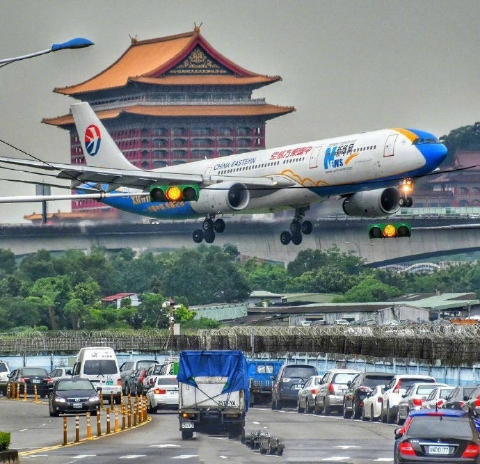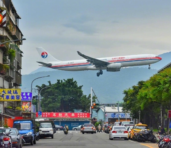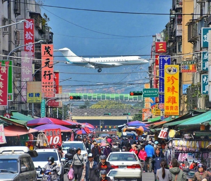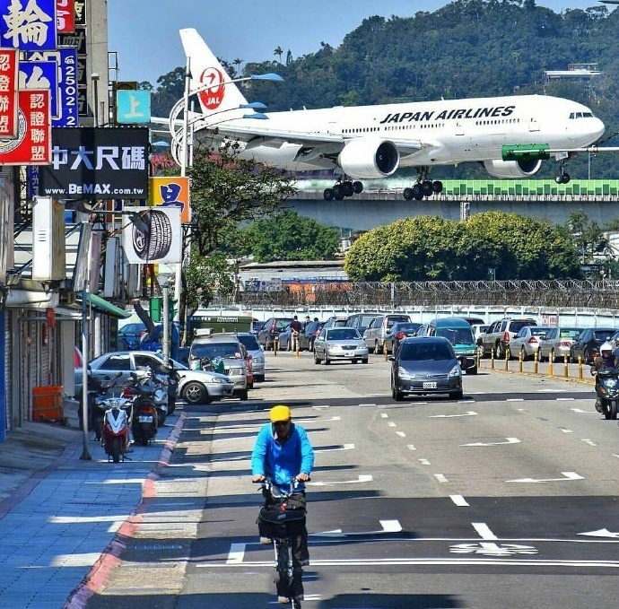 松山机场在市区,很小,感觉就是闹市中硬挤出一小块地给机场。感觉飞机降落难度很大,很怕碰到旁边的楼,不过这飞机也太可爱了,低空飞行飞过车水马龙的城市。