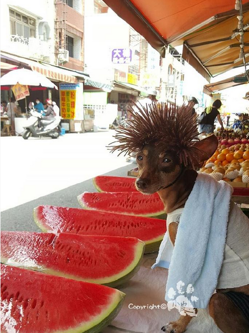 前段时间,台湾主人在水果店摆摊总是带上自己家汪星人的照片有没有看到过呢?小店今日主推什么水果,就让自己家里的汪星人小皮打扮什么造型,如此如此时尚,可以去巴黎看秀了!