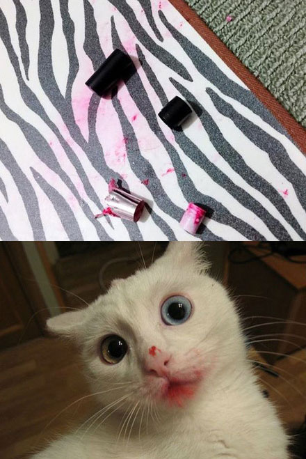 有些时候可能你不会相信,每个毛小孩心里都会有一个叛逆的孩子存在。下面来看看属于小毛孩的那些炫酷的图片,话说,这种情况真的好像是毛小孩在说“绝对是口红先动的手”。