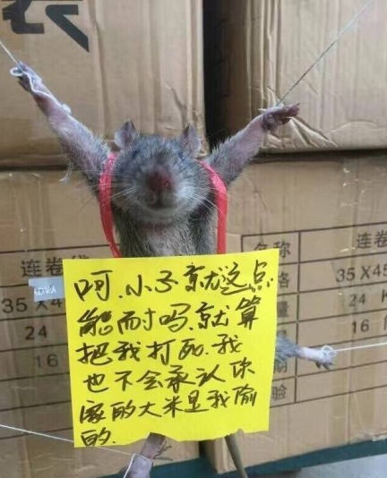 老鼠被五花大绑挂悔过书