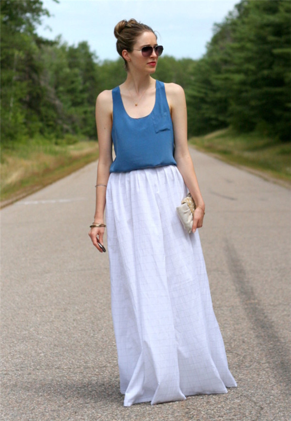 小编突然发现这些图片都是纯色的长裙。本来是想做别的系列的图片的,突然想到了街拍,于是做了这一期的图片,喜欢的小伙伴就收藏吧,对了,个人感觉穿长裙要看材料的,夏天最好的还是穿雪纺长裙吧,毕竟那样脚踝很凉快。