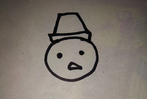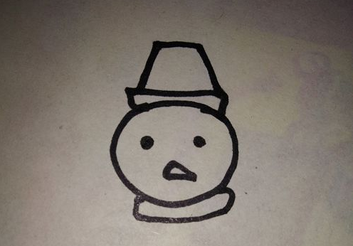 开始画雪人的帽子,在小圆圈的上面开始画,帽子的大小应该和头部差不多。