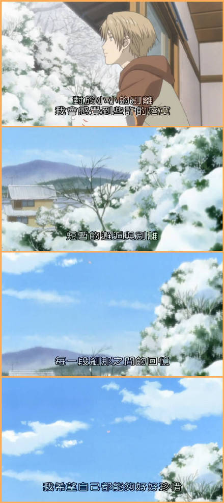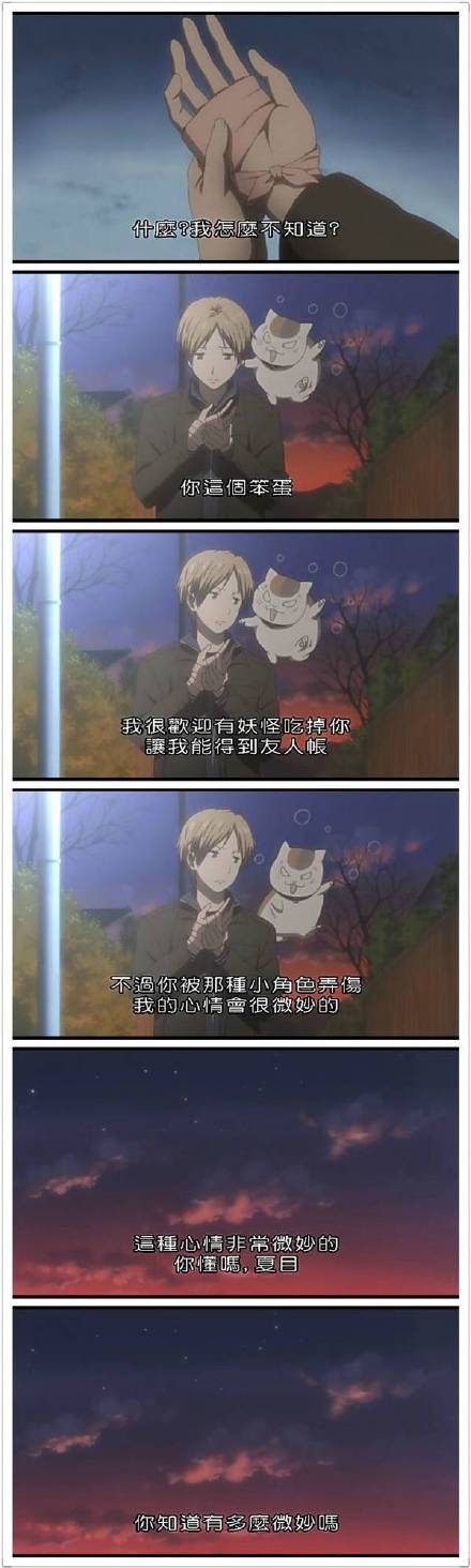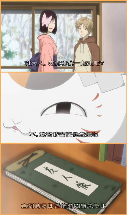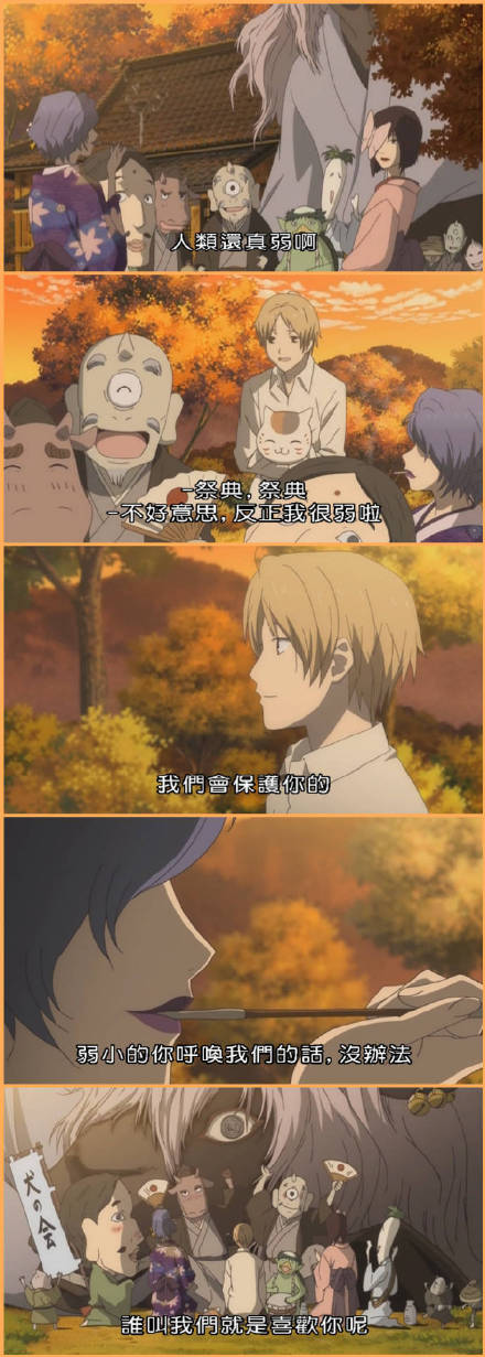 曾经有一种温暖叫做夏目,有一种陪伴叫做喵喵三。或许不是所有的妖怪都只是想要回自己的名字,有些只是想要去得到夏目,却也被夏目温柔以待,或许这部动漫火,是因为会让人想起身边的某一个人吧。