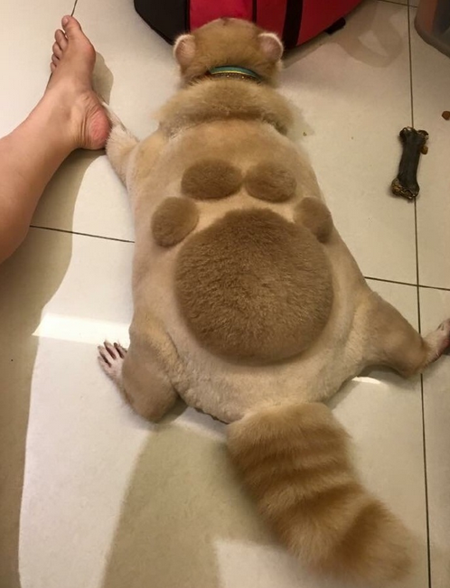 在台湾,因为天气热的关系,有个主银帮家里的浣熊剃了身上的毛毛,还顺便帮它剃了个肉球图案的造型。 。 。看起砗孟癖凰踩了一脚啊!