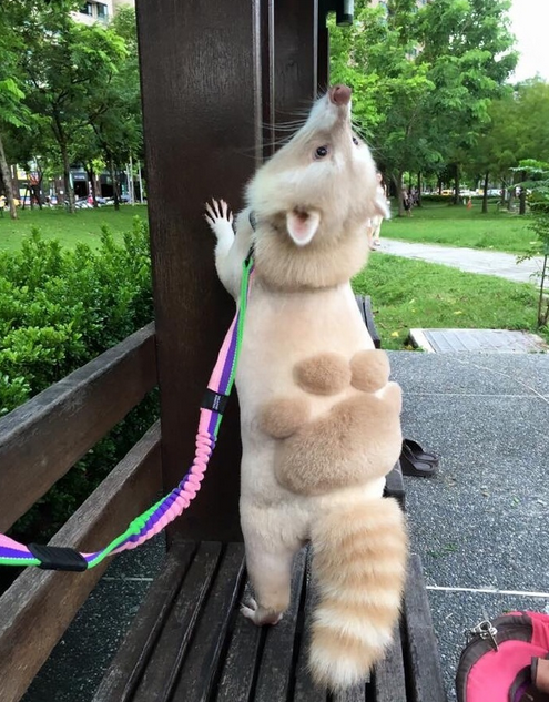 其实,小浣熊是可以被家养的哦!具体价格小编也不是很清楚。日前,台湾主人曝光了一组浣熊剃毛后的照片,看起来太可爱啦!
