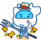 张小牛是一只蓝色线条的小牛,蓝色的大眼睛, 两个小犄角,爱好幻想,表情很搞笑。