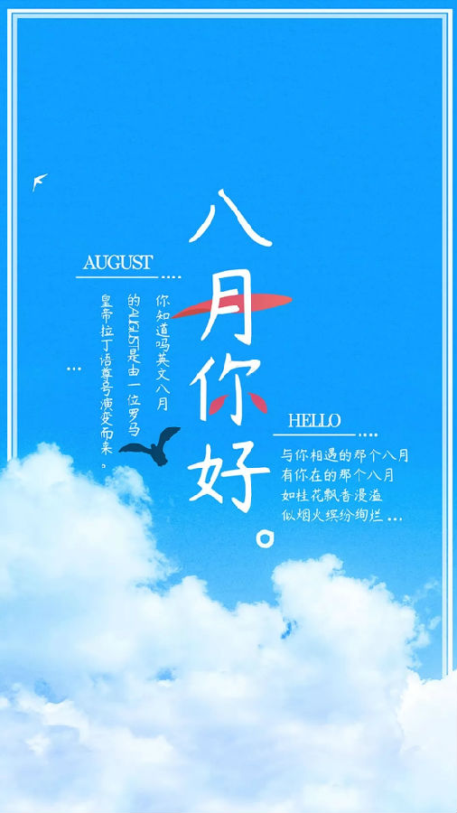 八月你好,从七月放假开始,就计划各种事情,结果到家,就像脱缰的野马,无拘无束,偶尔想到我的计划,有些内疚,但转眼就想,从八月开始吧,每天坚持!八月你好,愿八月的每一天都不被辜负。