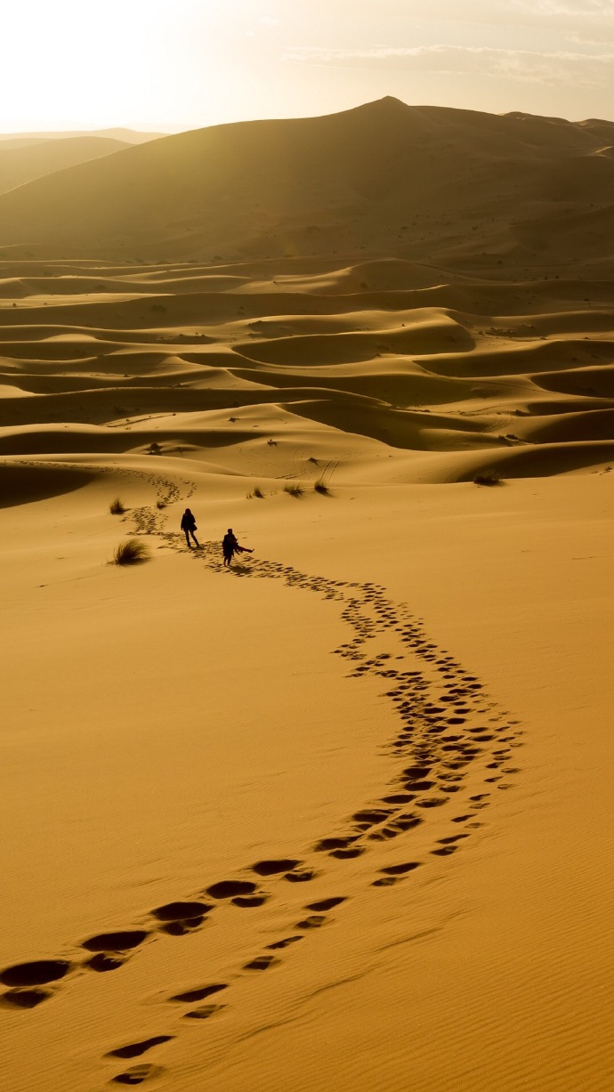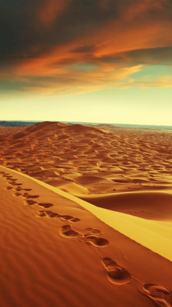 无边无际浩浩渺渺的沙漠,让人的整个心也跟着起伏不断,顿时世间所有的一切都变得微不足道,也没有什么值得你去烦恼的。