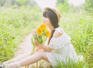 蓝天白裙少女