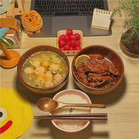 自己一个人的时候也要记得好好的吃饭啊,让自己的饮食营养均衡,学会好好的照顾自己哦。