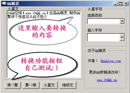 为了方便各位Q友制作繁体字个性签名,24QQ空间特别推出QQ精灵制作工具!