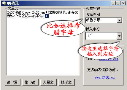 3.多种特殊字符插入支持,方便装饰个性签名.包括:希腊字母、俄文字母、特殊字符、常用QQ字符表情等等快速插入