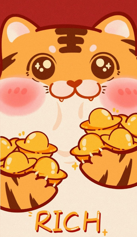 虎年超级可爱的一款小老虎的很喜庆的手机壁纸来给大家更新啦,很好看的新年氛围感手机壁纸一定要收藏着呀。