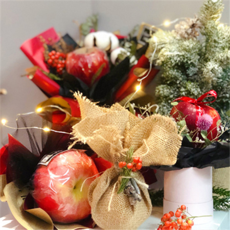平安夜吃苹果寓意着平平安安,所以一定要给你心爱的那个人送上最好看的苹果花束,让对方加倍平安。