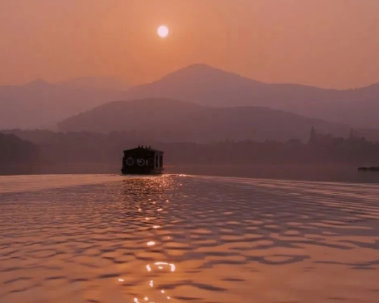 远处的云雾轻拂过黛山,橘黄的日落点缀其间,有风经过你停在窗边,我觉得人间美好。