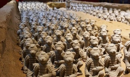 萌萌哒的泰迪熊版“兵马俑”亮相无锡!500多只手工捏制的泰迪熊兵马俑让人不得不惊叹。若埋在地下,几千年后会不会成为历史遗迹呢?