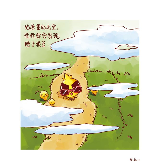 我们望着天空的时候往往只是发呆或者想着一些事情,而他望着天空的时候却只想到了脖子酸。