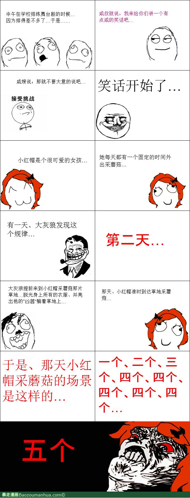 暴走漫画来源于生活中的一些小事,引起很多人的共鸣是因为它所描述的漫画内容会经常的口语化,就是我们典型的生活情况,偶尔的暴一下粗等,描述生活中比较愤怒的事。看到下面的图片,有没有让你想到了邪恶的一面。