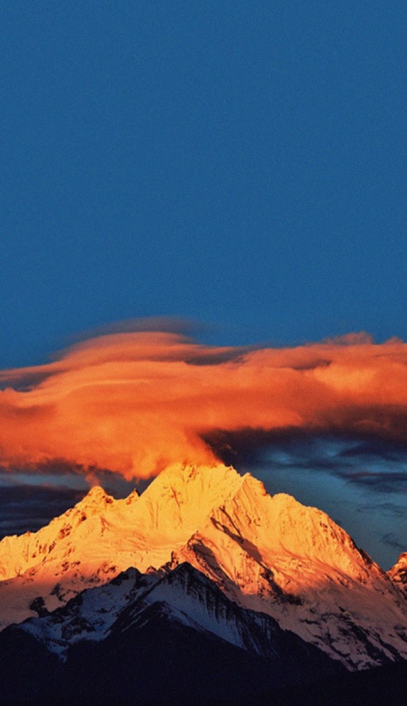 当第一缕阳光穿透云层,雪山之巅被镀上金边——这是大自然最奢侈的馈赠!换上这张壁纸,仿佛每天都能拥有被雪山吻醒的好心情。